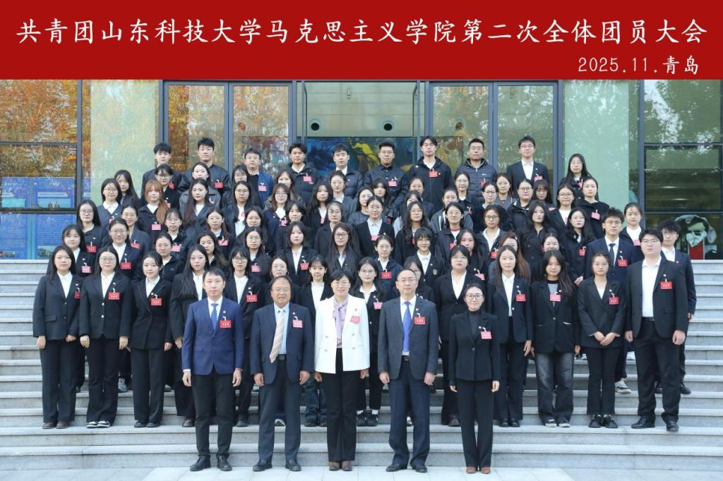 大会最后,全场起立奏唱《光荣啊,中国共青团》,共青团山东科技大学马克思主义学院第二次全体团员大会圆满闭幕。