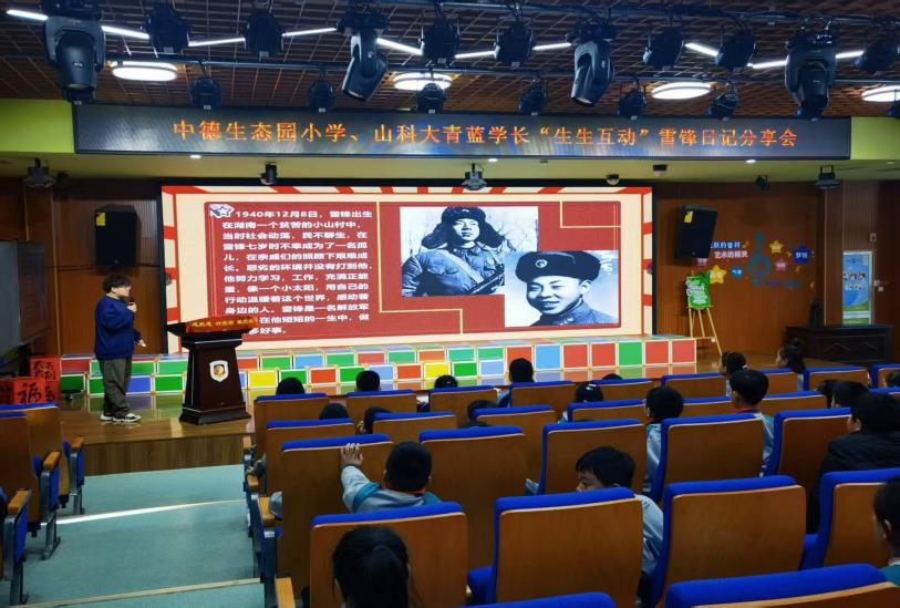 孙玉洁同学参与中德生态园小学一、二年级“聆听雷锋故事,传承榜样精神”主题分享会。活动期间,通过重温雷锋同志先进事迹并辅以图片资料展示,生动再现了雷锋同志作为解放军战士的质朴形象。全体学生集体诵读《雷锋日记》经典段落,以强化对雷锋精神内涵的直观认知,有效激发学习热情,引导学生从日常小事践行助人为乐理念,传递社会正能量。
