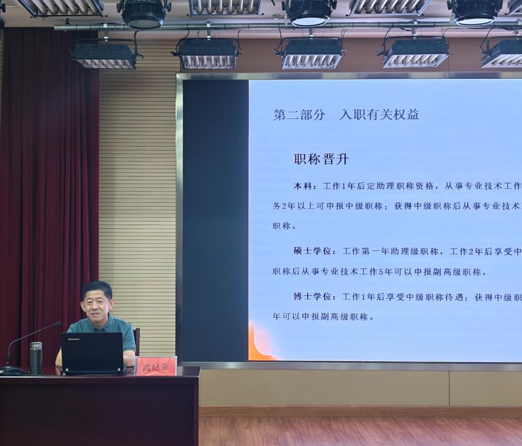 为帮助毕业生明确就业政策,维护自身权益,将求职规划与未来发展有机结合,9月10日下午,学院在图书信息中心102报告厅举办就业政策解读专题讲座。活动邀请淄博市引才专员、高级经济师武纪荣老师担任主讲嘉宾,研究生辅导员邴建伟主持,学院全体研究生参加。