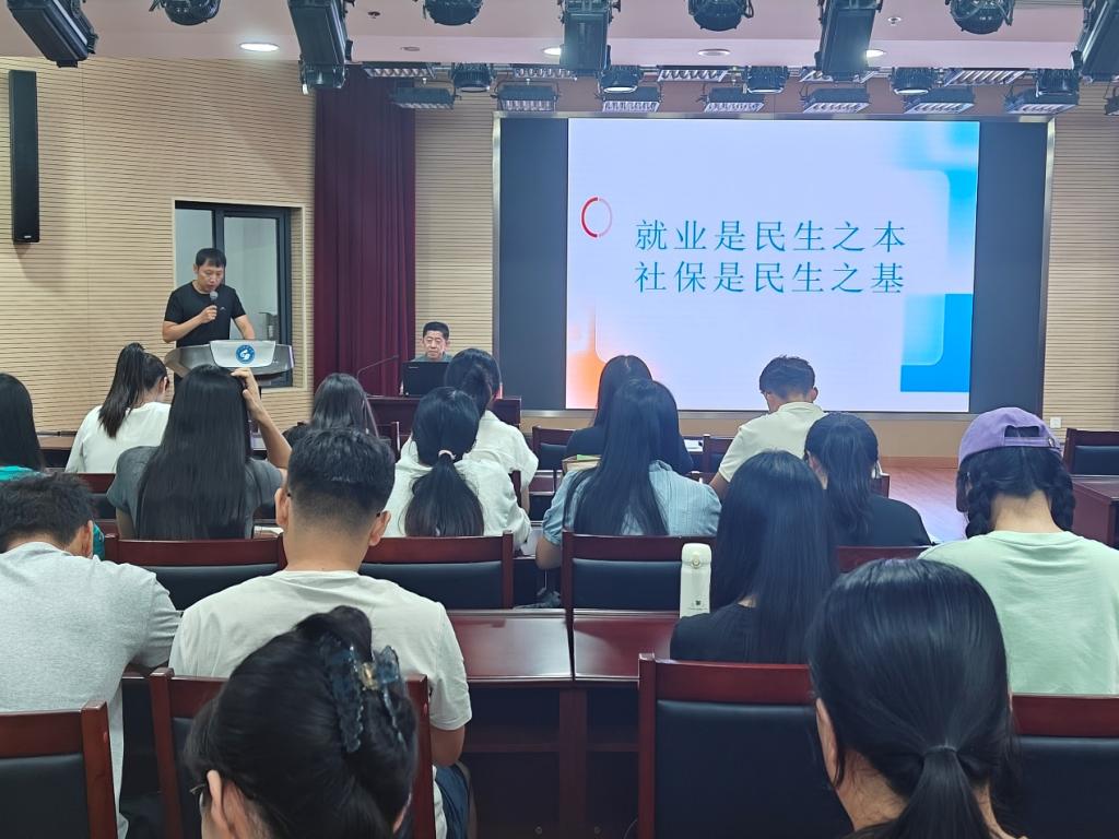 武老师以“就业是民生之本,社保是民生之基”为主题,从就业、社保、个人发展等方面展开。就业是最大的民生,也是高校学生实现自我价值的迫切需要。毕业生既要求职,也要明确自身权益。他引导同学们在政策和权益的理解中做好求职规划,谋划未来发展。他根据自身30年的相关工作经验,从学生角度出发,既从整体上分析当前国内外经济形势与就业环境、山东省人力资源社会保障基本情况,又结合《中华人民共和国劳动法》具体分析了部分行业的发展情况、就业状况以及薪资待遇,他还针对学生求职过程中会遇到的三方协议、劳动合同等问题配合实例展开说明,引导同学们早工作、早参保、早积累、早受益。