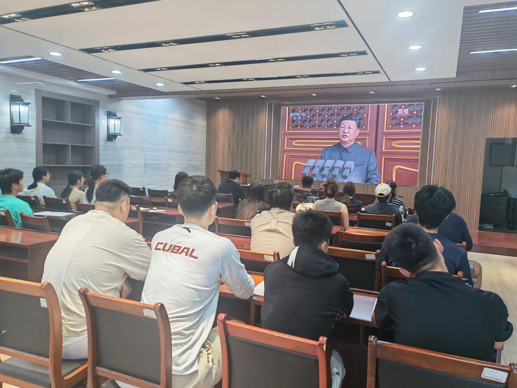 为深入学习习近平总书记在纪念中国人民抗日战争暨世界反法西斯战争胜利80周年大会上的重要讲话精神,工商管理(体育)2022团支部于9月18日在104会议室开展了“强国复兴有我 青春挺膺担当”主题团日活动,集体观看了习近平总书记在纪念中国人民抗日战争暨世界反法西斯战争胜利80周年大会上的重要讲话视频。