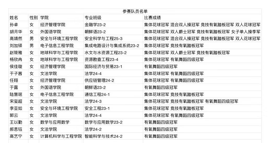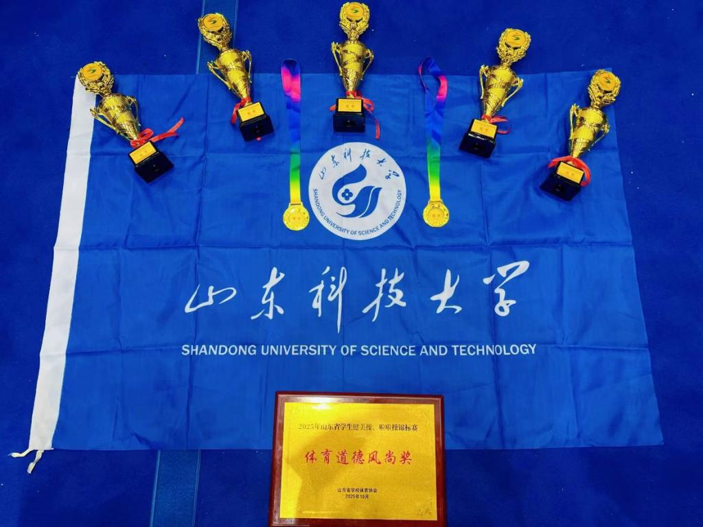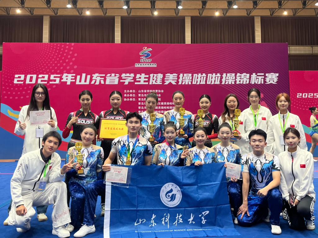 2025年山东省健美操啦啦操锦标赛于10月24日至10月26日圆满举行,在体育学院教师刘英宁和田雅文的带领下,山东科技大学健美操啦啦操代表队获得高校甲组规定动作有氧舞蹈四级冠军、双人花球冠军、集体花球啦啦操冠军、双人爵士冠军、竞技有氧踏板冠军、混合双人操冠军、女子单人操季军。