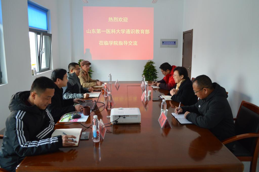 2月27日,山东第一医科大学通识教育部(体育艺术部)部长徐惠、体育教研室主任张超、办公室主任李鸣一行来学院进行工作调研交流,党总支书记兼院长田启发及班子成员接待了徐惠一行。