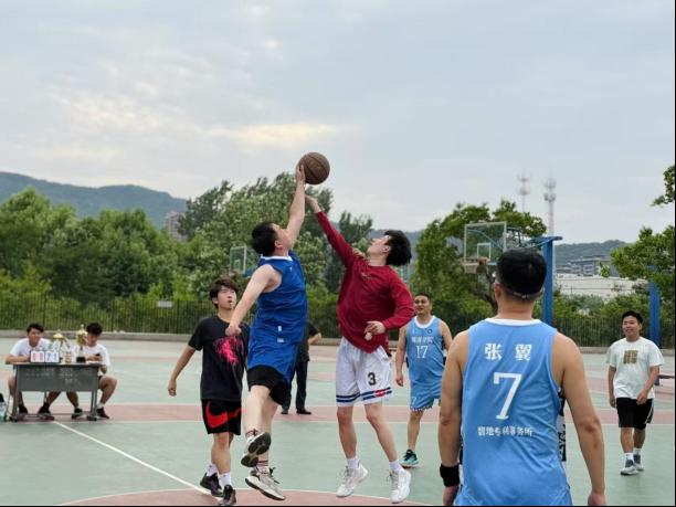 6月18日,海洋学院于高地篮球场举办师生篮球赛。学院党委书记朱建国、党委副书记兼副院长陈永磊、教师代表、毕业生代表参与本次篮球赛。