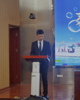 毕业生代表张晨旭上台发言,回顾了大学四年的成长历程,分享在专业学习中突破自我、攻克难题,以及在实践里积累经验、结交良师益友的经历。他感恩学院培养与老师教导,立志在海洋领域深耕,为国家海洋事业献力。