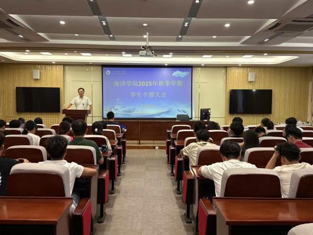 8月31日,海洋学院召开新学期学生干部会议,学院党委副书记兼副院长陈永磊、学工办主任(团委书记)刘骄、各年级辅导员以及全体学生干部参加会议。