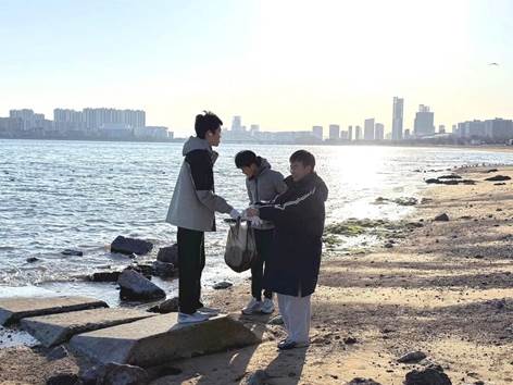 为清除海岸旅游旺季残留垃圾,守护海洋生态环境,同时将思政教育融入实践活动,引导学子强化环保责任意识,2025年11月18日,海洋学院联合青岛港湾职业技术学院现代航海学院前往黄岛区珊瑚贝桥景区开展“逐浪拾清,净候蔚蓝”净滩行动。