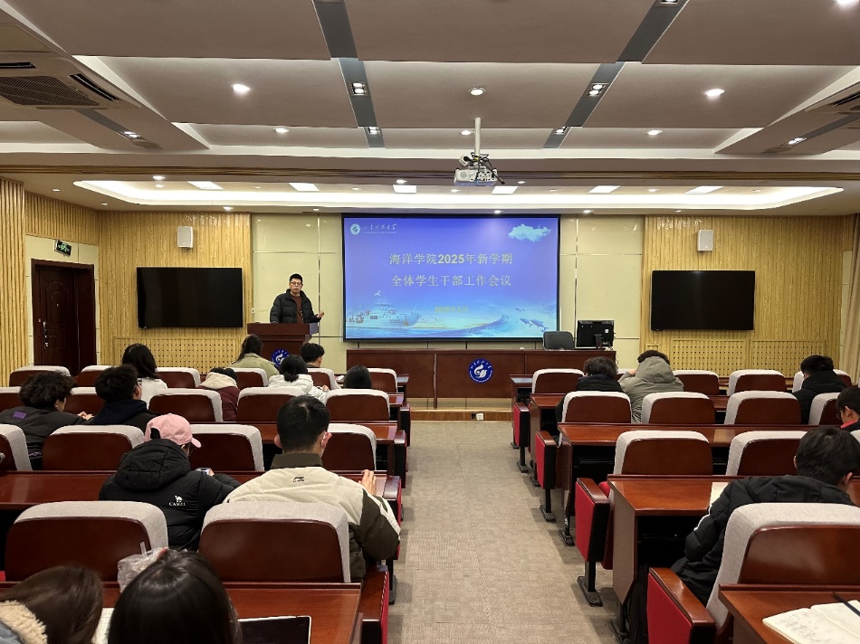 2月24日,海洋学院召开新学期学生干部会议,学院党委副书记兼副院长陈永磊、团委书记刘骄、各年级辅导员以及全体学生干部参加会议。