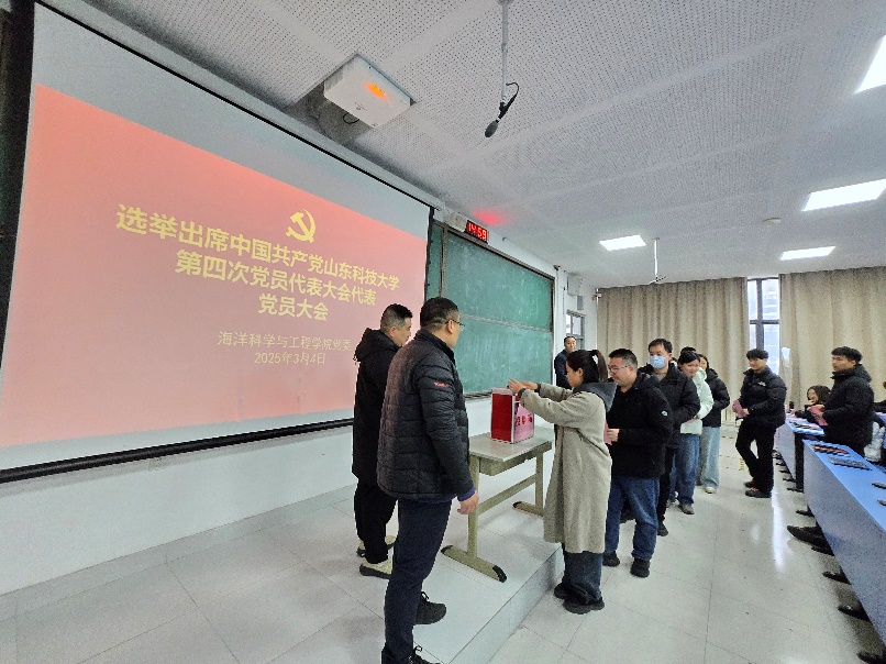 3月4日下午,海洋学院党委在J7-203召开党员大会,选举出席中共山东科技大学第四次党员代表大会代表。会议由学院党委书记朱建国同志主持。