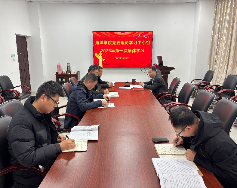 3月11日,海洋学院党委理论学习中心组开展2025年第一次集体学习,院党委书记朱建国主持学习活动,学院党委理论学习中心组(扩大)成员参加学习。