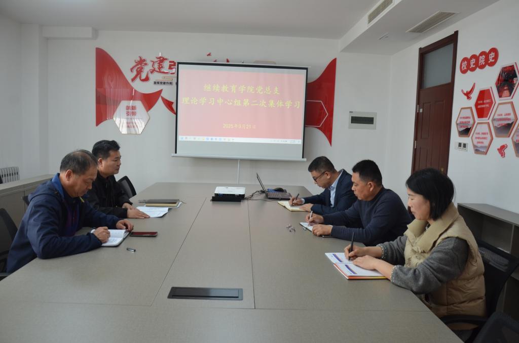 3月21日,继续教育学院党总支理论学习中心组开展2025年第二次集体学习,党总支书记贾长响主持学习,学院党总支理论学习中心组成员参加学习。