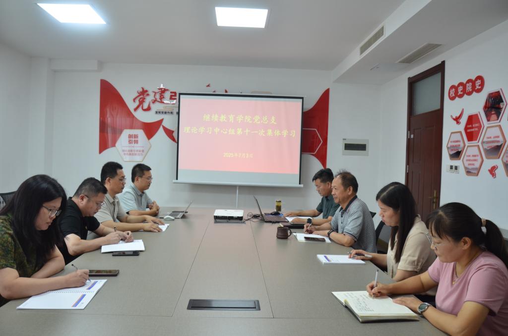 7月3日,继续教育学院党总支理论学习中心组开展2025年第十一次集体学习,党总支书记贾长响主持学习,理论学习中心组成员参加学习。