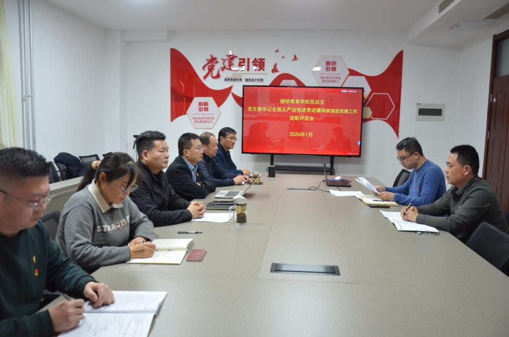 2026年1月15日,继续教育学院党总支召开2025年度党支部书记全面从严治党述责述廉和抓基层党建工作述职评议会。学院班子成员、支部书记、党员代表参加会议,会议由党总支书记贾长响主持。