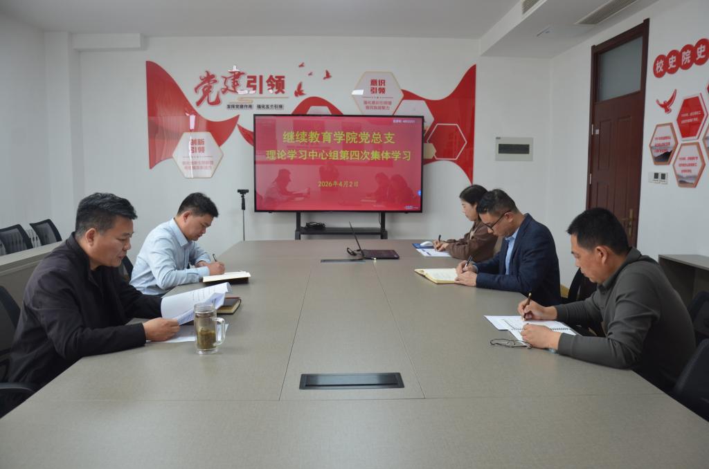 4月2日,继续教育学院党总支理论学习中心组开展2026年第四次集体学习,党总支书记贾长响主持学习,学院党总支理论学习中心组成员参加学习。
