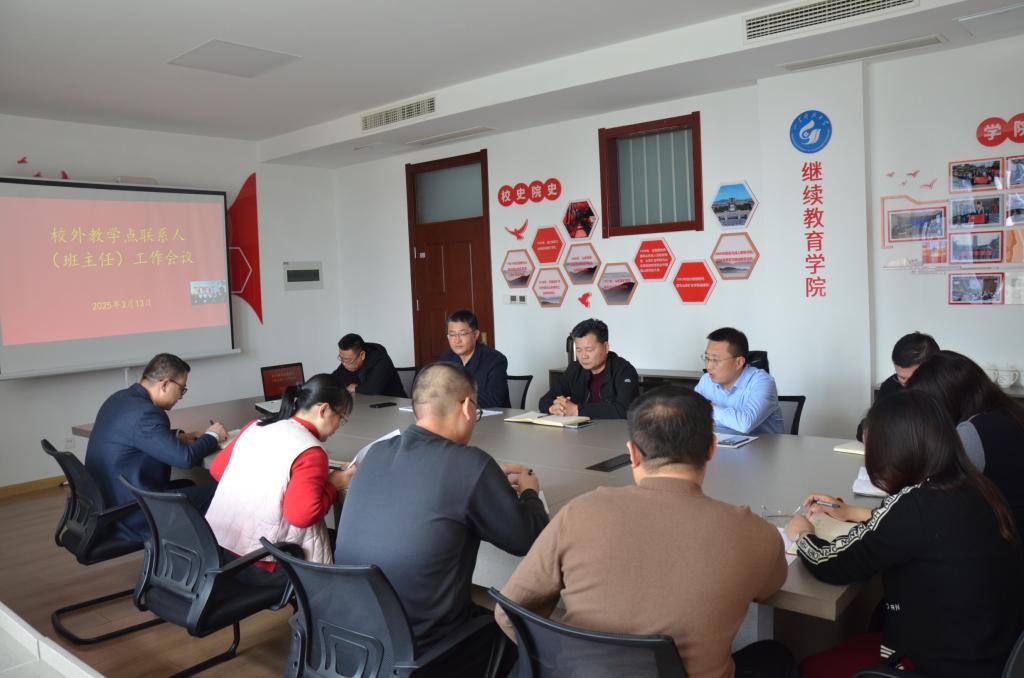 3月13日上午,继续教育学院在610会议室召开高等学历继续教育校外教学点联系人(班主任)工作会议。会议由副院长王佃春主持,党总支书记贾长响、院长马鹤,相关岗位负责人和全体校外教学点联系人(班主任)参加会议。