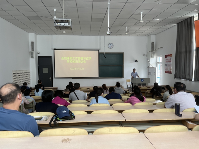 8月30日,基础课部在教学主楼301教室召开会议进行疫情防控知识培训和布置工作,基础课部全体教职工参加了会议,会议由基础课部党总支书记兼主任管清佩主持。