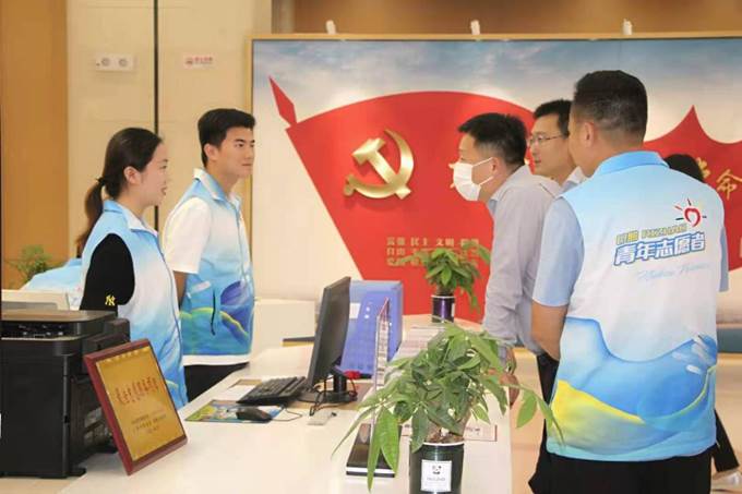 7月30日下午,共青团中央青年发展部部长黄大伟到日照市新时代文明实践中心大厅指导工作。调研过程中,丁浩衍向黄部长汇报了自己所参加的各项志愿活动,黄部长对丁浩衍的工作表示十分肯定,希望年轻人通过志愿活动来锻炼自己、提高自己,在宝贵的青春年华中多为社会作出贡献。