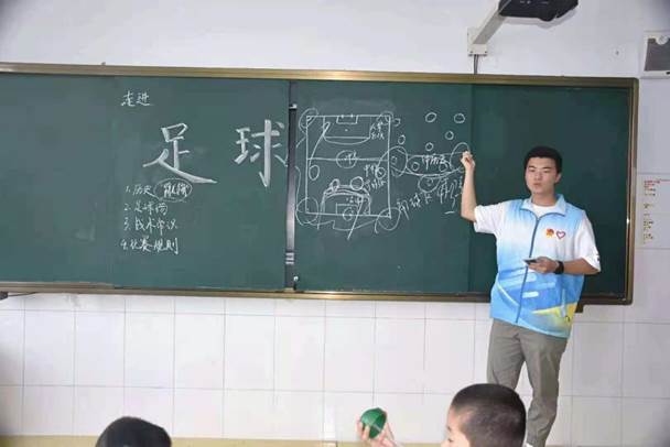 社会实践期间,丁浩衍在与阳光助残志愿者协会辛书记交流中了解到,乡村小学在文艺、体育、绘画等方面教育资源缺乏,假期中多半孩子无人看管。为了能够促进乡村孩子们的全面发展,阳光助残志愿者协会和团市委、市教育局联合举办了“七彩假期”支教行动,丁浩衍参与其中。