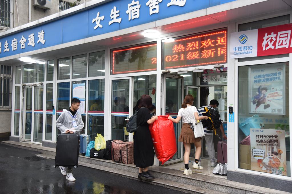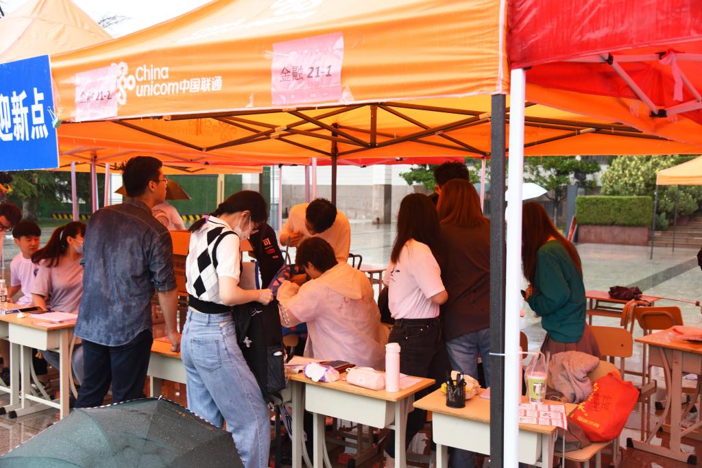 迎新当天,在报到服务处、验码测温区、行李消杀点,随处可见迎新工作人员和学生志愿者温暖的笑脸、忙碌的身影、热情的引导和耐心的解答。虽然大雨滂沱,但志愿者热情贴心的服务丝毫未减。