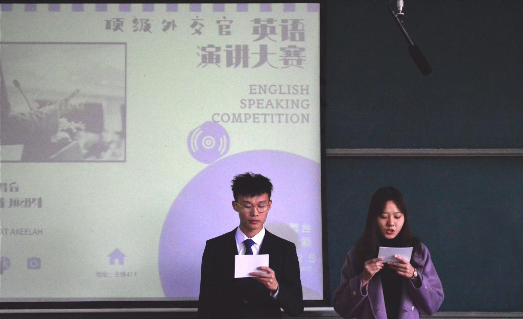 为发挥中外合作办学优势,激发学生英语学习兴趣,营造浓厚国际化氛围,财经系学生会科技创新部于12月5日下午3时在1-411教室举办“顶级外交官”英语演讲比赛。