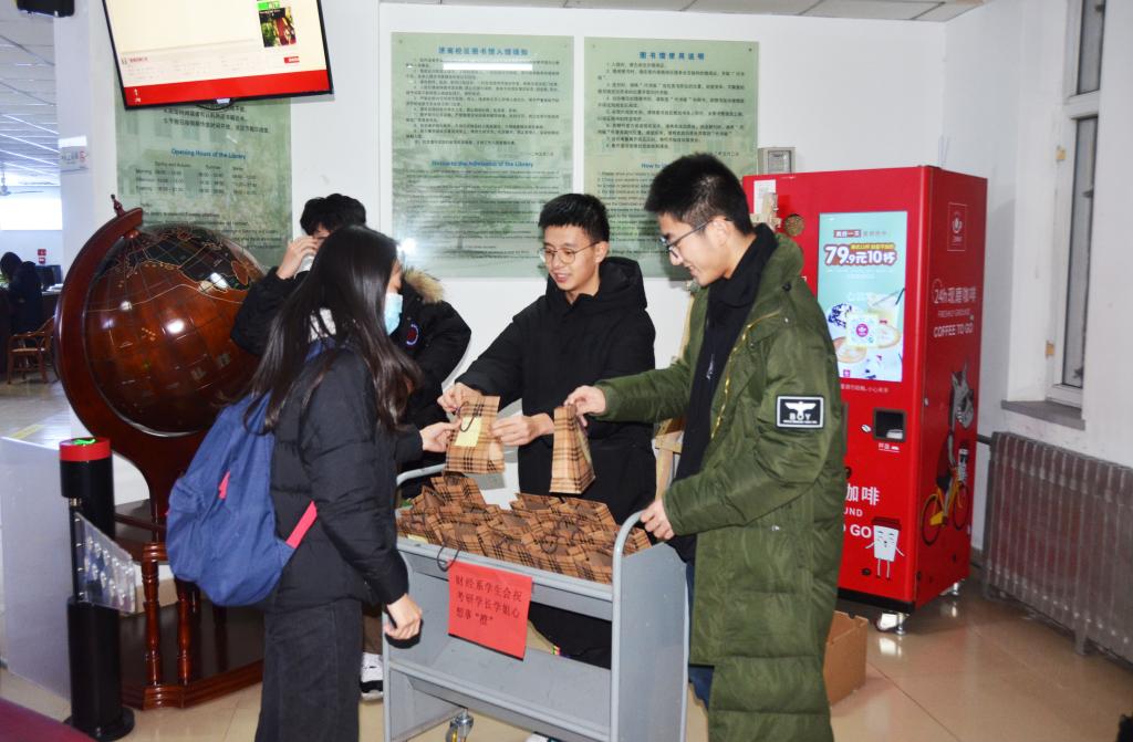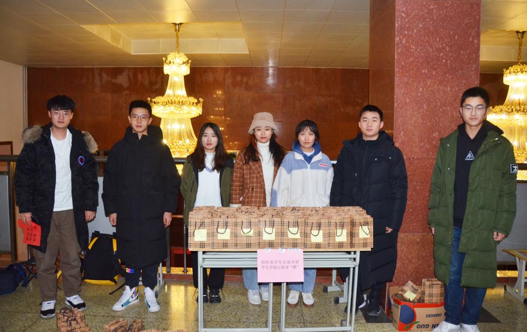 随着国家公务员考试、全国硕士研究生招生考试、山东省选调生选拔考试接踵而至,为增强学生考公考研信心,缓解学生考试压力,财经系学生会于12月17日、21日在学生宿舍和考研自习室开展赠送橙子和考试加油包活动。