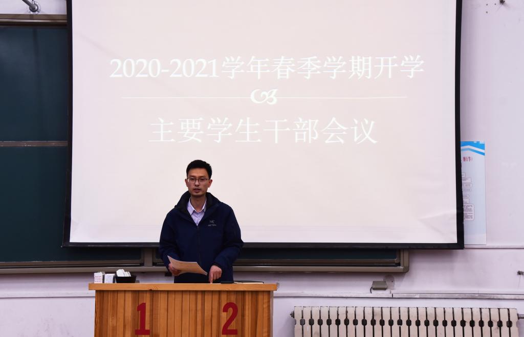 齐斯文简要总结了寒假期间工作,对新学期学生工作重点、开学主要工作进行了详细部署,针对第十七届挑战杯红色专项作品征集、“重走长征路”和安全知识竞赛答题向各班再次做了宣传动员,要求各班要围绕党史校史学习、科技创新竞赛、“第二课堂成绩单”目标任务做好团学特色工作,结合青鸟计划、西部志愿服务、征兵入伍、创业就业等重点工作做好个人职业规划。文编:左媛 摄影:郝雨)