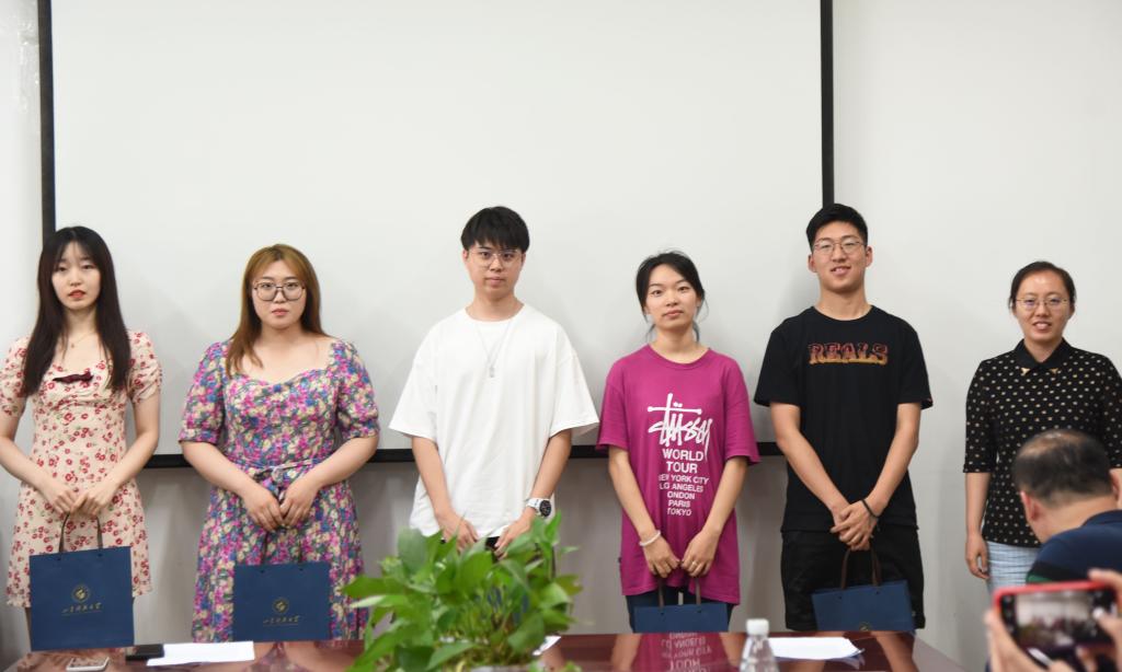 欢送会结束后,领导老师们向2018级中英项目出国学生赠送纪念品并合影留念。