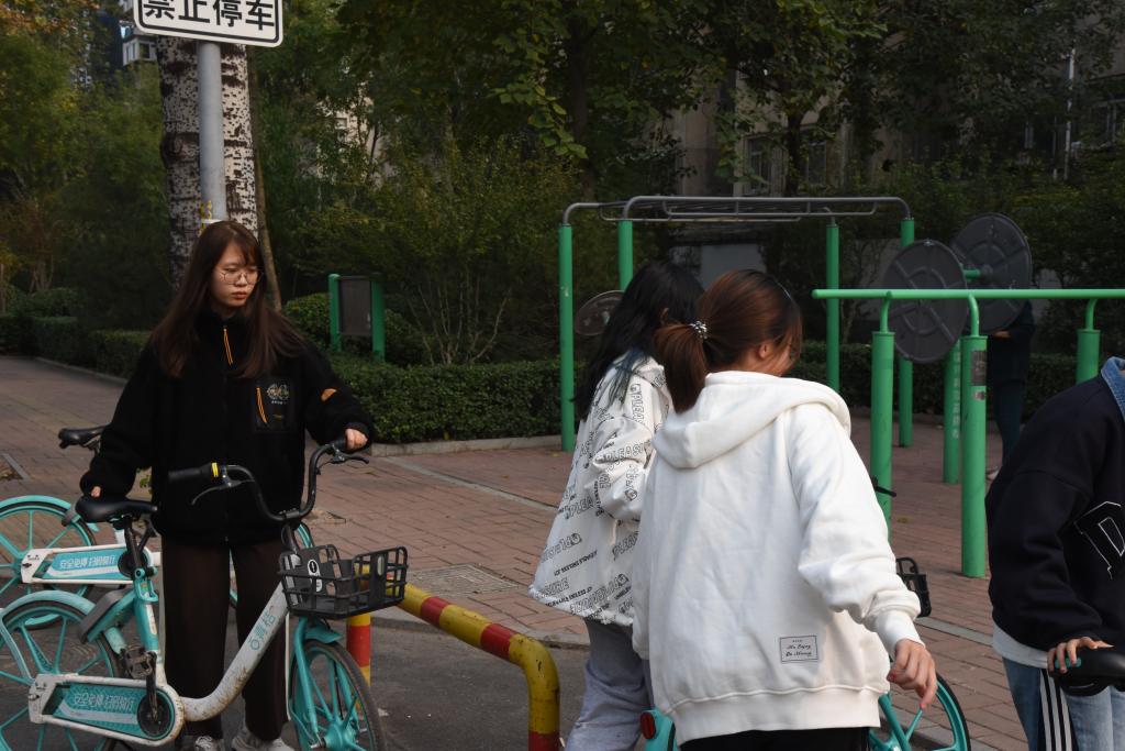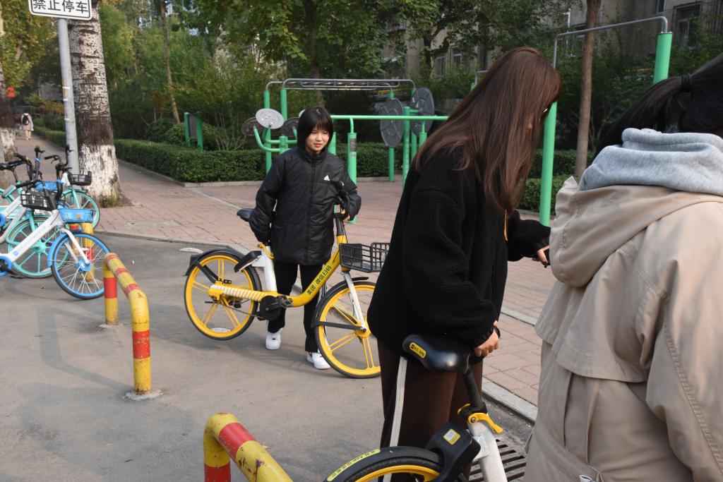 校门口共享单车摆放