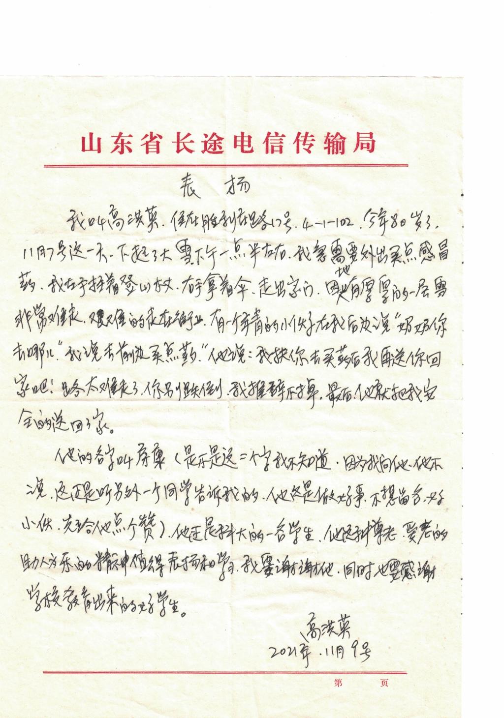会计学2020-1班房康表扬信