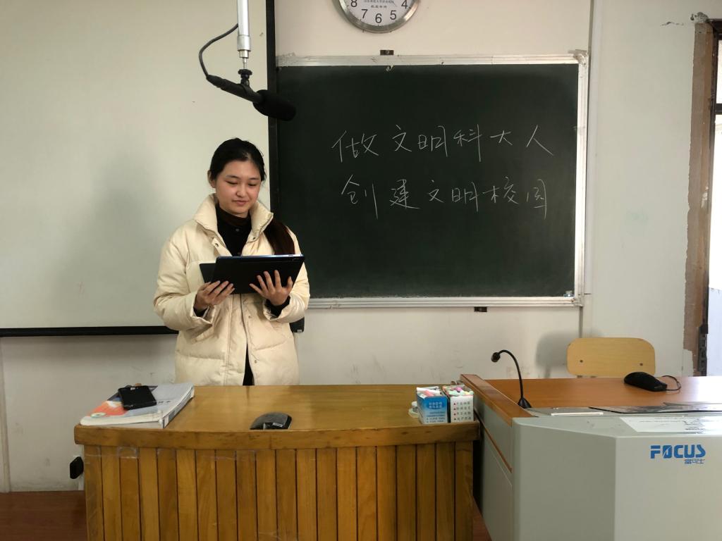 各班认真学习了《关于集中开展文明校园创建活动的通知》、“爱粮节粮 反对浪费”倡议书 、“做文明科大人 创建文明校园”倡议书、“创造之美 美美与共”创建文明校园倡议书,引导广大学生弘扬“坚忍不拔、发愤图强”的科大精神,秉承“爱校奉献、实干敬业”的科大传统,践行“团结、勤奋、求是、创新”的科大校风,以强烈的责任感、饱满的热情和务实的工作作风,积极投身到文明校园创建活动中来,思想上高度重视,行动上积极参与,从每个人做起,从每件事做起,为创建活动做贡献。