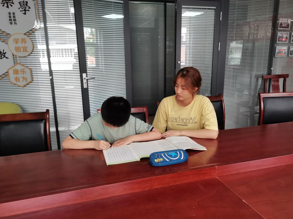 孙萌在“沂蒙小学堂”辅导小学生做功课