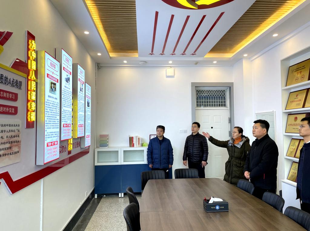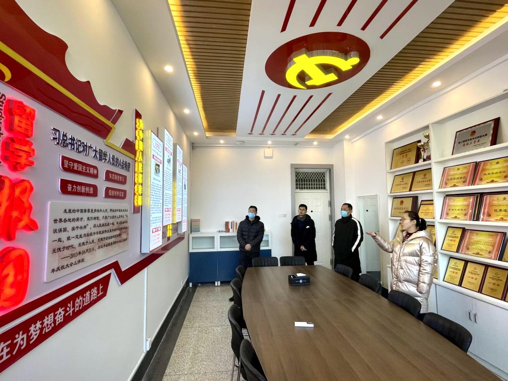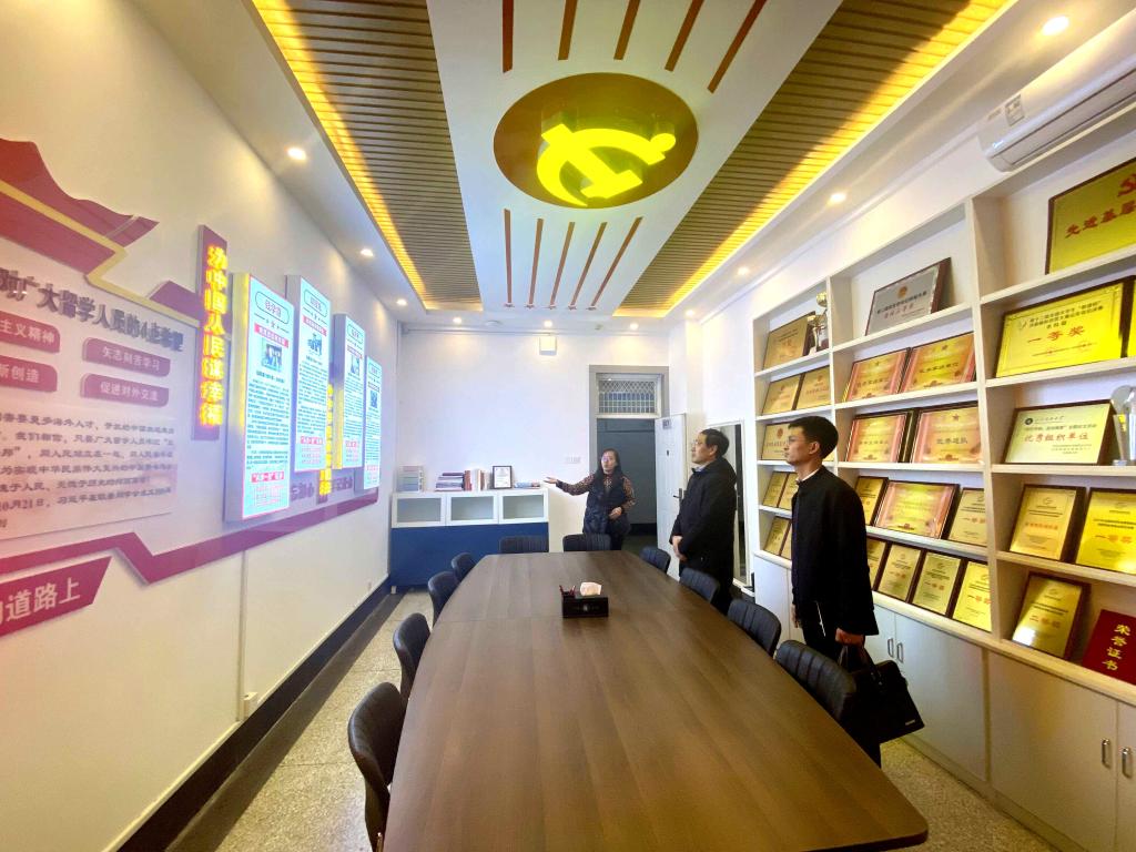 校区党委副书记贾长响、管委副主任兼党政办公室主任孙国强、党政办公室副主任兼机关党总支书记冷树伟调研党建活动室