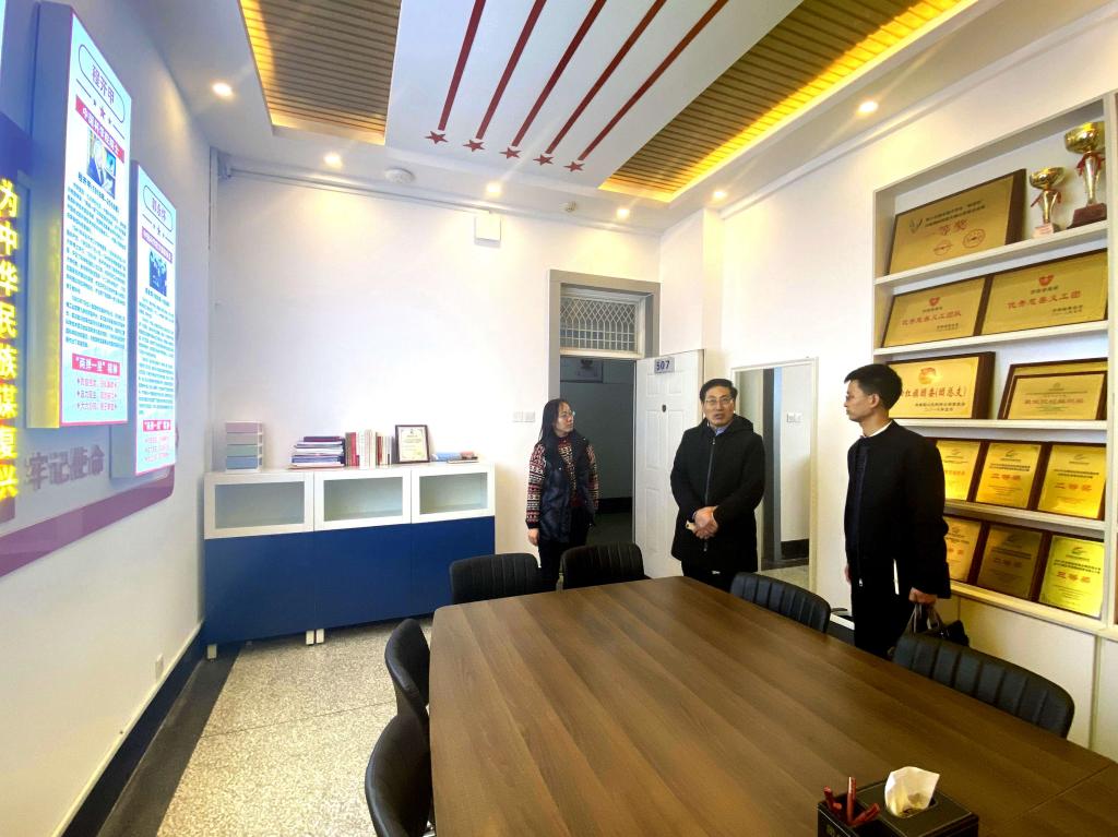 财经系党总支书记仉兴泉、党政办公室主任胡元明调研党建活动室