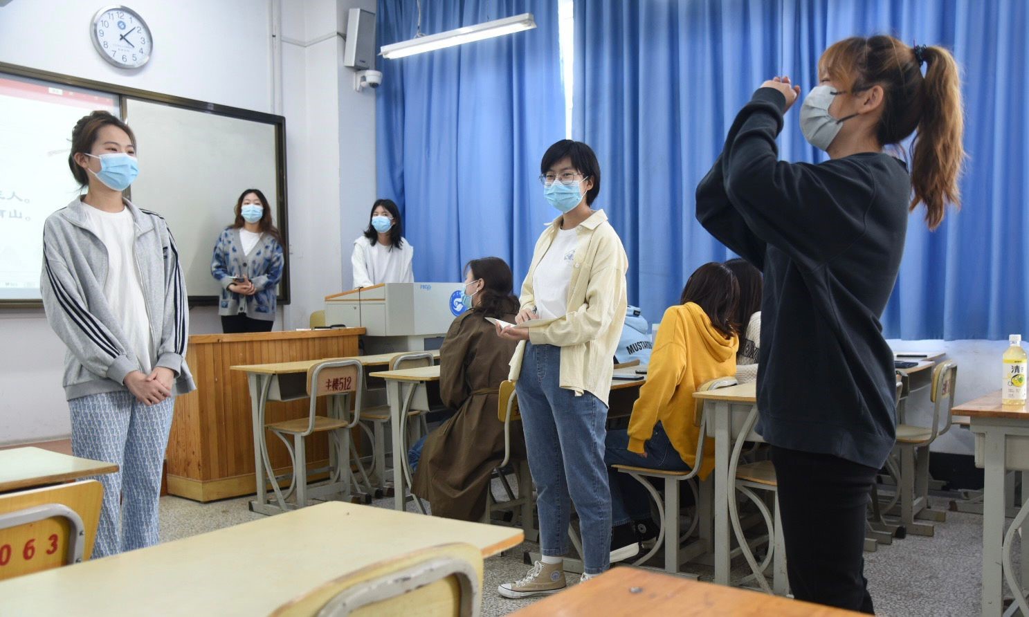 本次活动共有10支队伍参加,采用双人组形式,通过背景板上的诗词,一人比划一人猜。“随风潜入夜,润物细无声”“春潮带雨晚来急,野渡无人舟自横”“春风又绿江南岸,明月何时照我还”……大家在诗词歌赋中滋润心灵,让诗意之息氤氲校园,畅享“诗家清景在新春,绿柳才黄半未匀”的游春之乐。选手们激烈的比拼、默契的配合、敏捷的反应赢得了阵阵掌声。