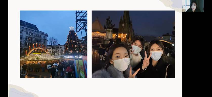 张心然、李佳霏、赵同峥依次分享了在英国伍斯特大学近一年的学习感悟、生活经历和硕士研究生申请相关经验等。张心然着重介绍了在校的专业学习经验,强调自律自强、勤奋扎实的重要性,讲述了丰富多彩的校园文化生活;李佳霏向大家展示了英国住宿的特色、多样化的美食和观赏大型汇演的经历,通过视频立体展现了与世界各国青年交流合作的别样体验;赵同峥结合亲身经历,讲述了硕士研究生的申请经验和各高校学院录取研究生的具体要求。提问互动环节,学生们踊跃参与,积极提问,现场气氛热烈。