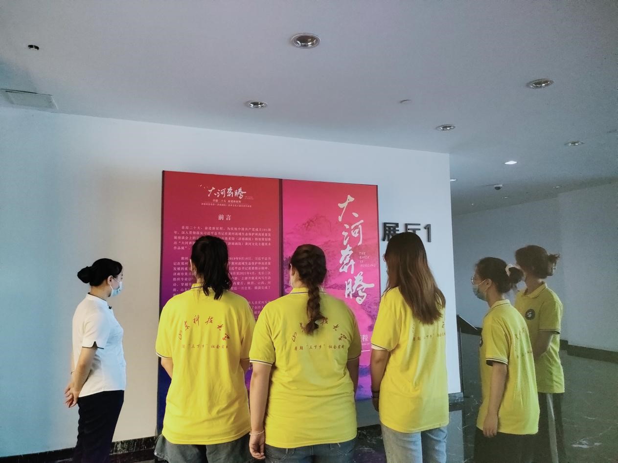 万里黄河向海流,龙腾虎啸贯神州。为深入贯彻习近平总书记在黄河流域生态保护和高质量发展座谈会上的讲话精神,7月22日,财经系“黄河嵙研”实践队前往济南市美术馆,以“读懂黄河故事,弘扬黄河文化,凝聚精神力量”为主题,开展暑期社会实践活动。