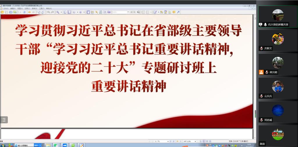 9月5日上午,财经系党总支理论学习中心组开展2022年第十二次集体学习,深入学习领会习近平总书记在省部级主要领导干部“学习习近平总书记重要讲话精神,迎接党的二十大”专题研讨班上的重要讲话精神和《习近平谈治国理政》第四卷。财经系党总支书记仉兴泉主持会议,理论学习中心组成员参加。