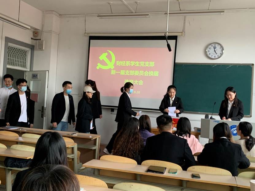 为进一步加强和改进财经系党支部建设,根据《中国共产党章程》《中国共产党支部工作条例(试行)》《中国共产党普通高等学校基层组织工作条例》和学校党委《关于加强党支部“六化”建设的实施意见》《关于做好基层党支部换届选举工作的通知》等有关规定和通知精神,按照《财经系党支部换届选举工作方案》要求,于近日圆满完成换届选举工作。