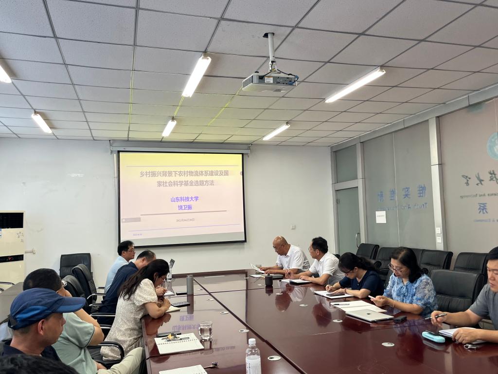 6月30日下午15:00,财经系承办的第15期人文社科群青年学者沙龙在3-316会议室顺利举行,经管学院副院长、泰山学者青年专家、博士生导师饶卫振教授做《乡村振兴背景下的农村物流体系建设及国家社科基金选题方法》的主题报告。会议采用线上线下方式同步进行,济南校区财经系青年教师、科研科、电气系及青岛校区相关研究领域的部分教师参加了报告会,财经系学术副主任袁清文主持会议。