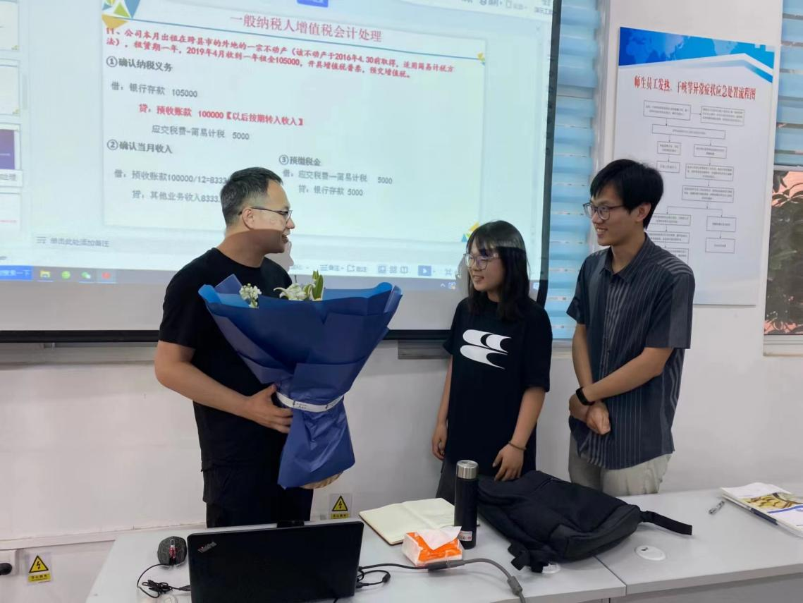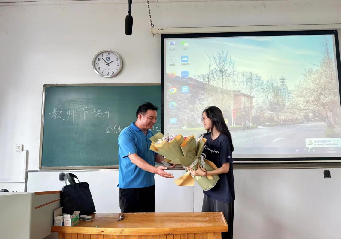 “兢兢业业献青春,全心全意育桃李。”教师用宽厚仁德作纸,以满心真情为墨,用心血与汗水描摹出每个学生精彩的未来。财经系各班级通过课前、课后向任课教师起立、鞠躬,一句句真挚而又响亮的“老师,您辛苦了”,表达了学生对老师“沐杏雨、念师恩”的敬爱之情。财经系各班还精心为任课老师准备了手写贺卡与鲜花。一枝枝鲜艳欲滴的康乃馨,象征着老师们春风化雨,对学生的无私奉献之情;一张张充满感激之情的卡片,展现了财经学子对辛勤付出的老师们的无限感恩之情;一句句“半师半友半知己,半慕半尊半一程”“提灯引路,育梦成光”“桃李天下,春晖四方”承载了莘莘学子对老师们节日的祝福。同时,财经系还利用电子屏、电视等形式,开展“为教师亮灯”活动,大力弘扬优秀尊师文化,营造浓厚的节日氛围。