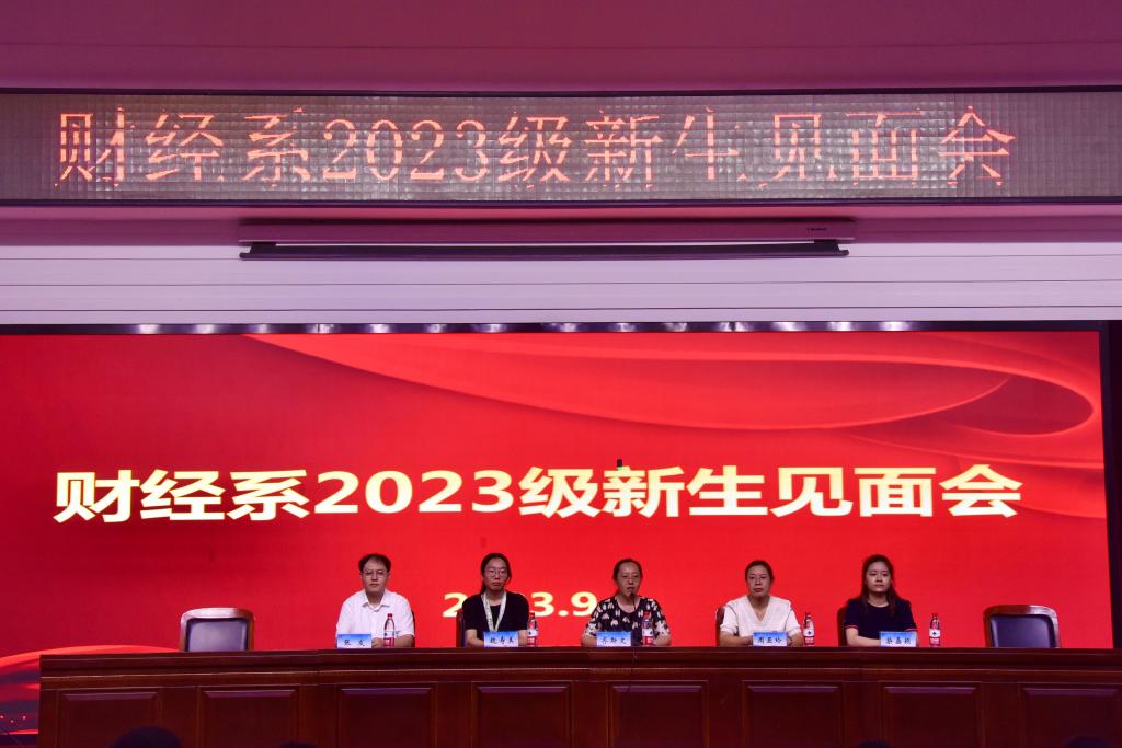 9月8日下午,财经系在图书馆报告厅召开2023级新生见面会。财经系党政领导班子成员出席会议,财经系学生工作干部与2023级全体学生参加会议,会议由财经系学生工作办公室主任、团总支书记齐斯文主持。