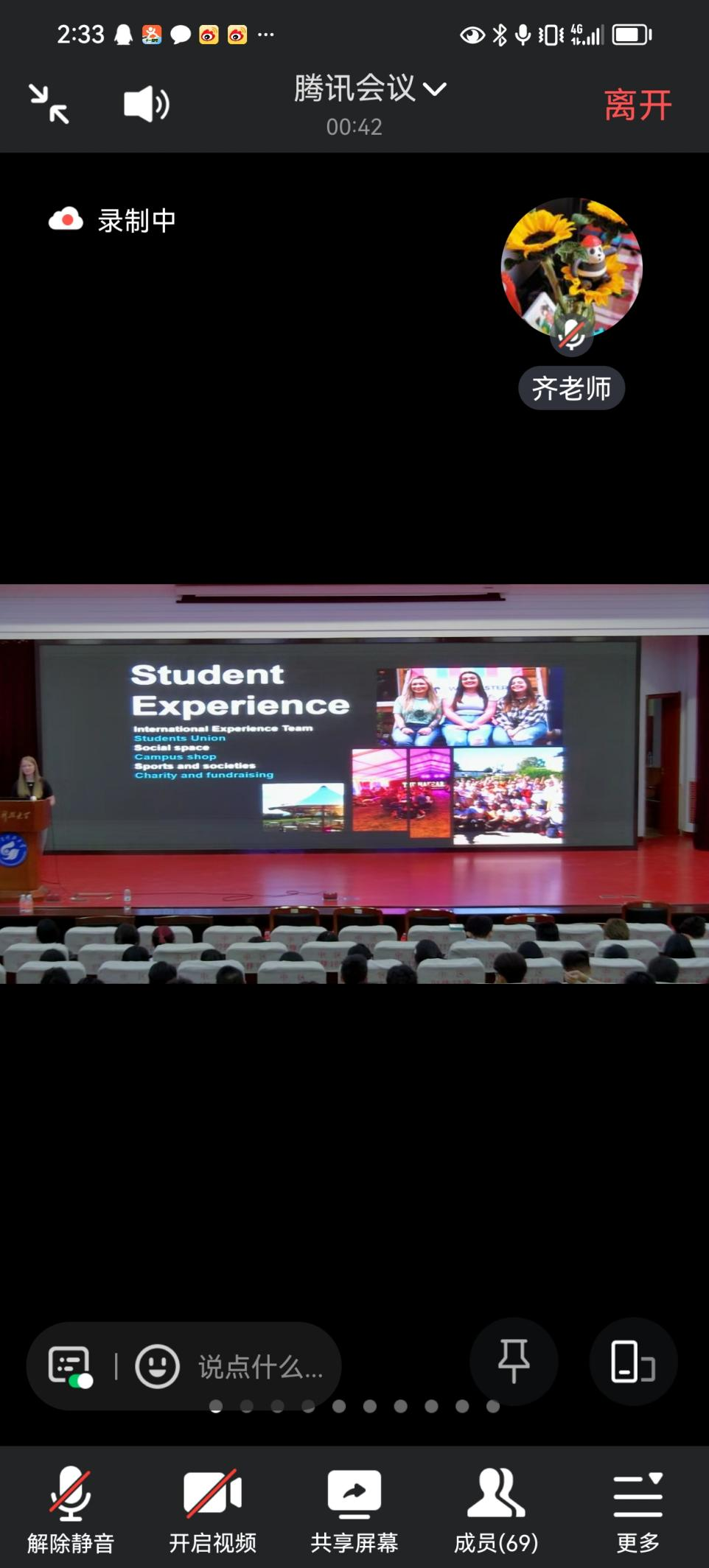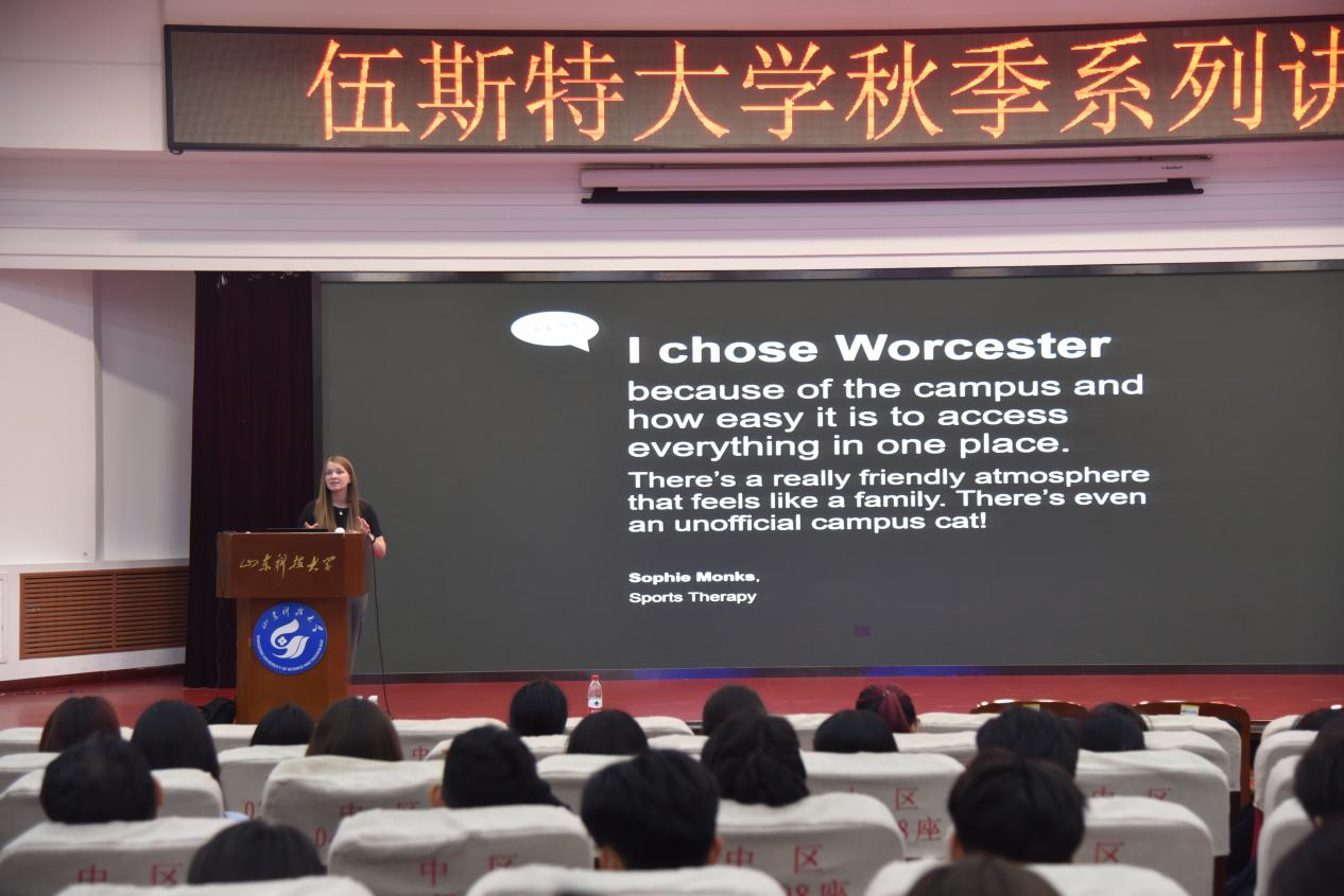 会议伊始,副校长Lisa Stansbie、国际部主任Nick Slade、学术英语与技能中心主任Melanie Jane Jarman、商学院项目主管Robin Bell向同学们致以诚挚的问候,表达了对山东科技大学学生留学英国伍斯特大学的欢迎,齐斯文总结了近年来我系在学生留学、出国深造等方面取得的优异成绩,指出项目说明会在推进以留学为导向的“三个体系”建设中的重要意义。会上,Lauren对伍斯特郡的地理位置、人文环境、城市景观以及伍斯特大学的项目优势、申请条件、奖学金政策、学习生活环境、校园硬件设施、课余活动实践、安保措施、中外教育差异、中英文化交流等方面进行了详细介绍,并做了现场解答。Tina讲解了国内本科GPA和英国本科荣誉学位的重要性,分享了学长学姐的亲身经历和往届学生的优秀录取案例,鼓励同学们多与正在伍斯特大学学习的学长学姐交流经验,向榜样学习,向优秀看齐,鼓励同学们早定向、早规划、早行动,抓住合作办学优势和机遇,在留学之路上实现青春梦想!会议还观看了优秀学长学姐的经验交流视频,分享了出国留学体会。