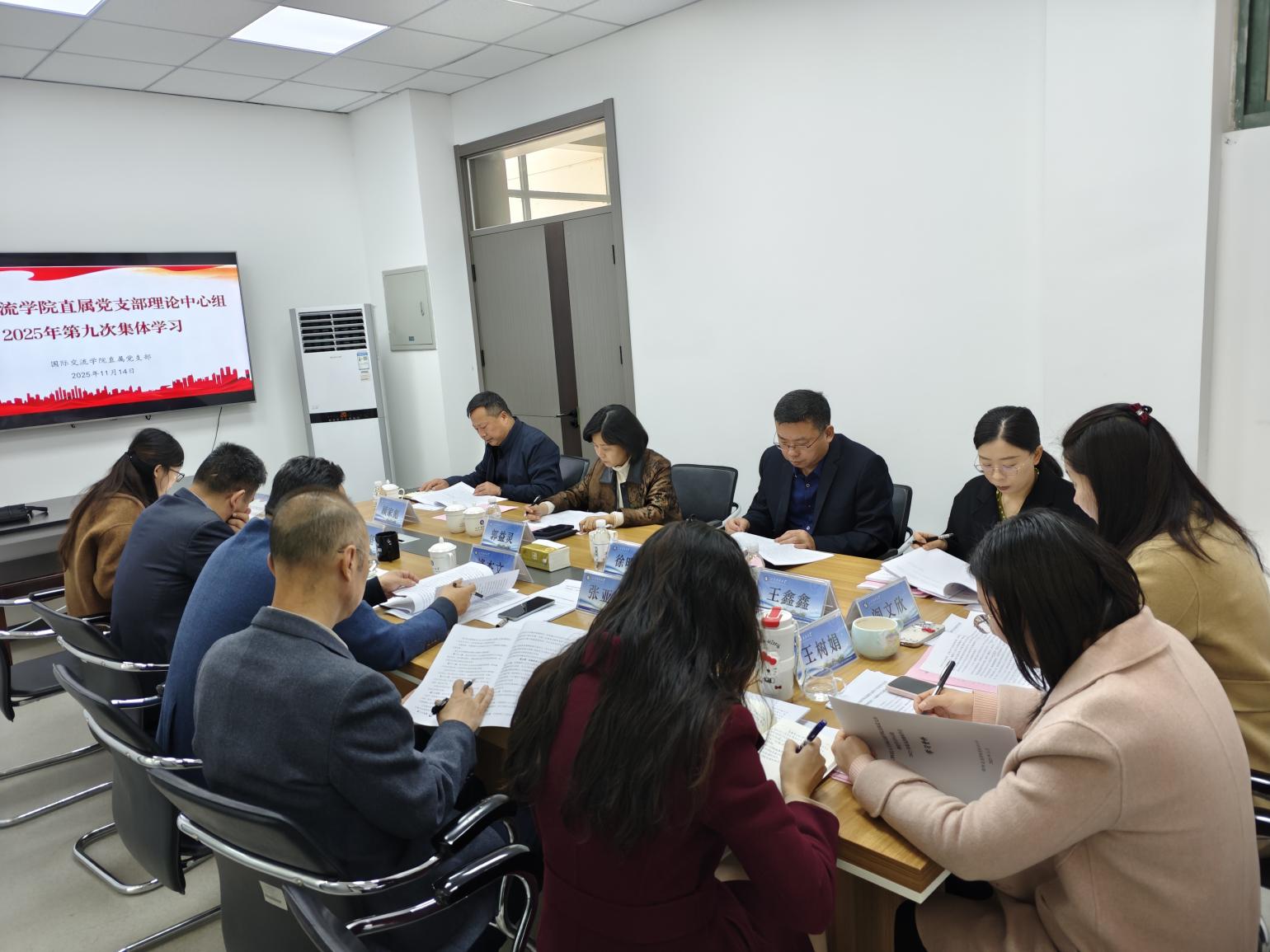 11月14日上午,国际交流学院开展直属党支部理论学习中心组第九次集体学习、直属党支部委员会和党政联席会。学校党委副书记郭益灵、纪委副书记徐明磊、安全管理处副处长顾家彪、学生工作处正科级干部王鑫鑫列席旁听。会议分别由学院直属党支部书记逄杰文、院长范志坚主持,学院领导班子成员参加会议。