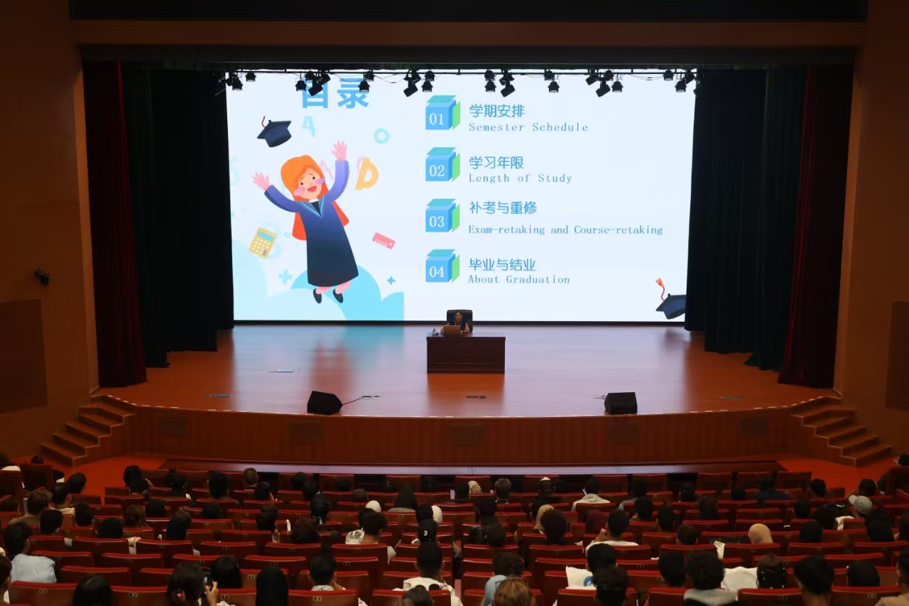 10月15日,国际交流学院于图书馆惟新讲堂举办2024级国际学生新生入学教育,学院相关教师和近400名新生参加教育活动。