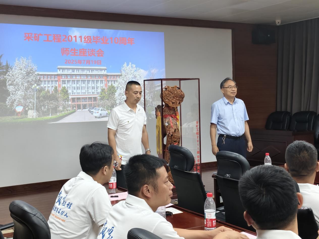 贾宏俊向返校校友表示热烈欢迎。他指出,校友离校的十年正值学校跨越式发展期,校区面貌焕然一新,办学水平显著提升。谈及校友发展,贾宏俊强调校友是学校发展的重要力量,期待携手共进,开创互利共赢新局面。他向校友提出三点倡议:一是善用母校品牌,积极深化校企合作,推动产学研协同创新。二是主动加强校友联络,搭建校友交流平台,促进资源共享与业务联动。三是关注毕业生就业发展,共建人才培养生态,实现校友和母校共赢发展。最后,贾宏俊深情寄语校友:“采矿工程专业是山科的立校根基,这份同窗情因专业纽带而弥足珍贵。期待将来再聚首,共谱资源共享、合作共赢的新篇章!”