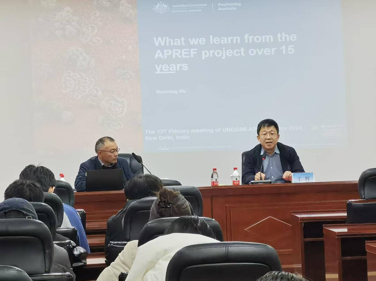 报告中,胡国荣博士结合APREF项目15年来的实践积累,系统阐述了亚太GNSS网的建设进展与数据处理成果。他介绍,该项目自2010年启动,每周分析约1100个站点数据,涵盖332个IGS20核心站点,所有数据产品均对外共享,并于今年完成官网优化,周解算严格衔接GPS周与ITRF2020框架。在APREF站点建设方面,胡博士重点解析了站点分级标准与运营规范,将站点划分为三个等级,分别承担支撑高精度网络、衔接国际与国家大地基准、提供区域基准服务等职能。他结合印度IITK00IND、泰国KMIT00THA等典型案例,深入剖析了站点monument稳定性、天空能见度、持续供电与通信保障等关键要素对数据质量的影响,特别指出2023年受贾斯珀飓风影响的MOSS00AUS站点因设施不稳导致出现250毫米水平位移的重要案例。此外,胡博士还分享了APREF成果在支撑澳大利亚国家基准建设与板块运动监测中的实际应用,展示了堪培拉、墨尔本等地的板块移动数据。同时,他也指出了当前亚太地区在数据开放共享、数据重处理与分析中心增设等方面面临的挑战,并对未来发展规划进行了展望。