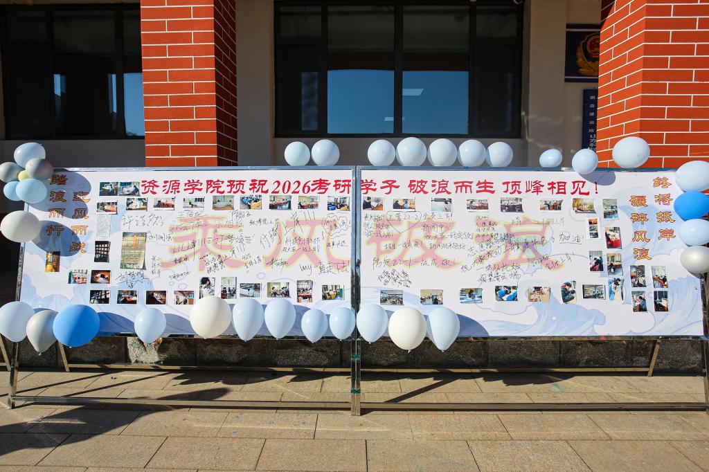 风好正是扬帆时,奋楫逐浪天地宽。在考研冲刺的关键时刻,资源学院全体师生以最真挚的情感与最实在的行动,为每一位拼搏的学子加油助威。衷心祝愿所有2026届考研学子:笔下生辉,从容应考,得偿所愿,一战成硕,迈向更加辉煌的未来!(文:邵彬 何爽 张晓晖 图:郝敬如 张靖骞 高喆 黄秋涵 刘梦想 史一凡)