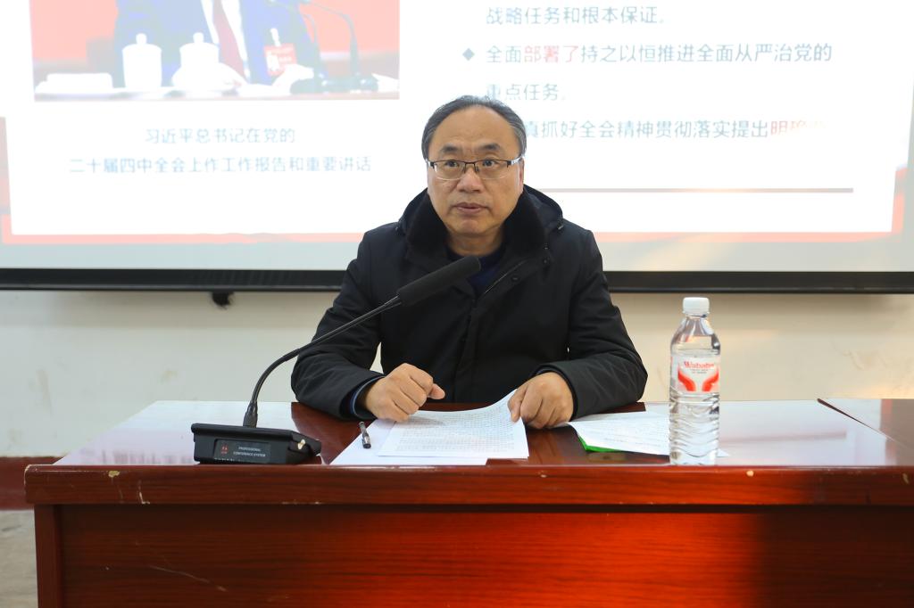 为深入学习贯彻党的二十届四中全会精神,推动全会精神进校园、进课堂,1月6日,资源学院党委书记高尚宇在1A107教室为学院教职工和工程管理22-4班学生宣讲党的二十届四中全会精神。