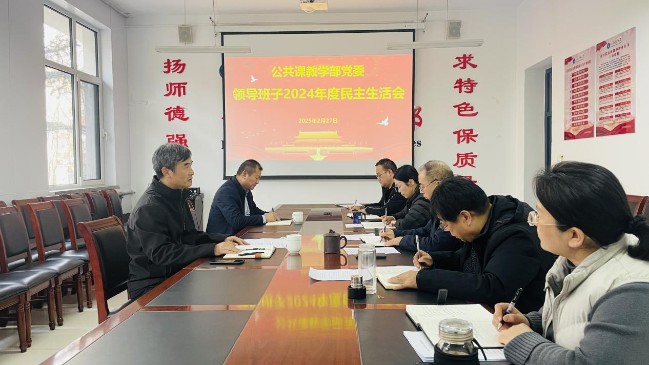 2月27日下午,公共课教学部党委召开2024年度领导班子民主生活会,泰安校区党委委员、管委副主任兼学团工作部主任戴东宝,校组织部副处级组织员兼泰安校区机关党总支书记殷永贵到会指导督导。学部党委书记兼主任朱学军主持会议,党委领导班子成员参加会议,党外领导班子成员列席会议。
