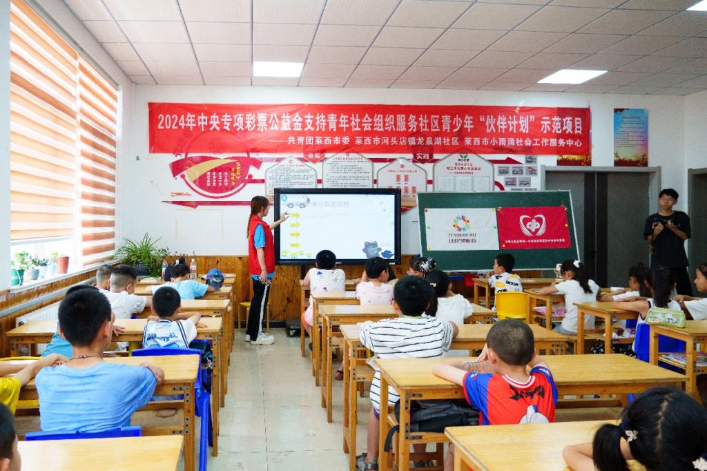 为全面提升新时代青年的综合素质,激发关爱自然、保护环境的责任感,7月21日,红心筑梦-阡陌新禾实践队的大学生志愿者化身“环保导师”在莱西市河头店镇小雨滴社会服务中心开展了一场以“探秘环境密码”为主题的环保公益课堂,通过动画科普、互动游戏与创意绘画,让孩子们在实践中解锁环保知识,播下守护家园的绿色种子。